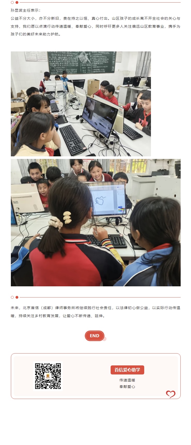 跨越山海,为爱奔赴|北京首信(成都)律师事务所向云南山区小学捐赠电脑,温暖直达